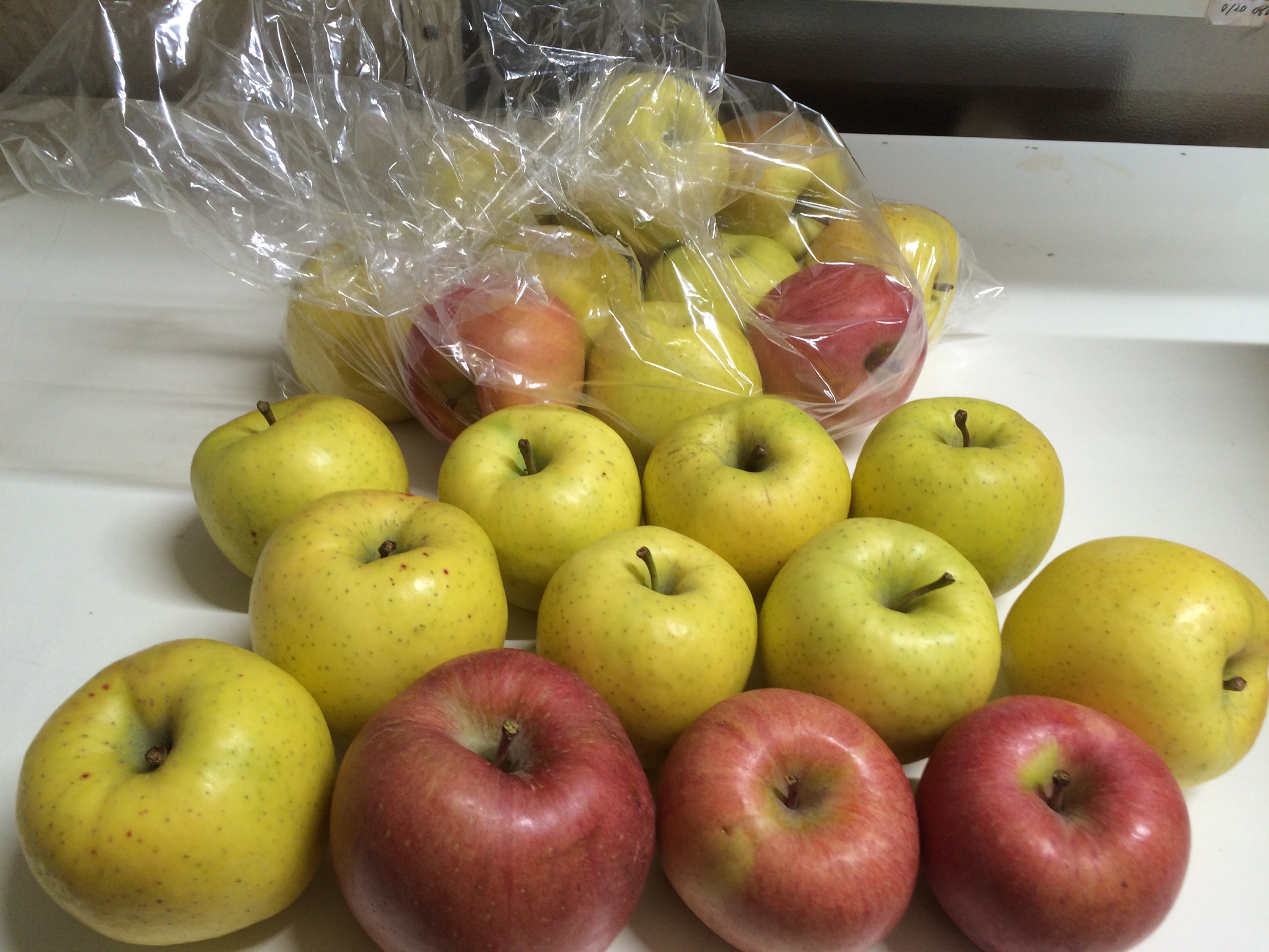 りんごのくに青森県 お客様からりんごをたくさんいただきました〜 弘前市の農家の方で、お買い物の帰りぎわに置いていってくださいました(^-^) むつに、りんごを届けに来られたそうで、お孫さんに、フライボールをお土産にとご来店されたお客様です 珍しい品種の物もあるそうで、後で皆んなで食べ比べてみようと思いま〜す ありがとうございました